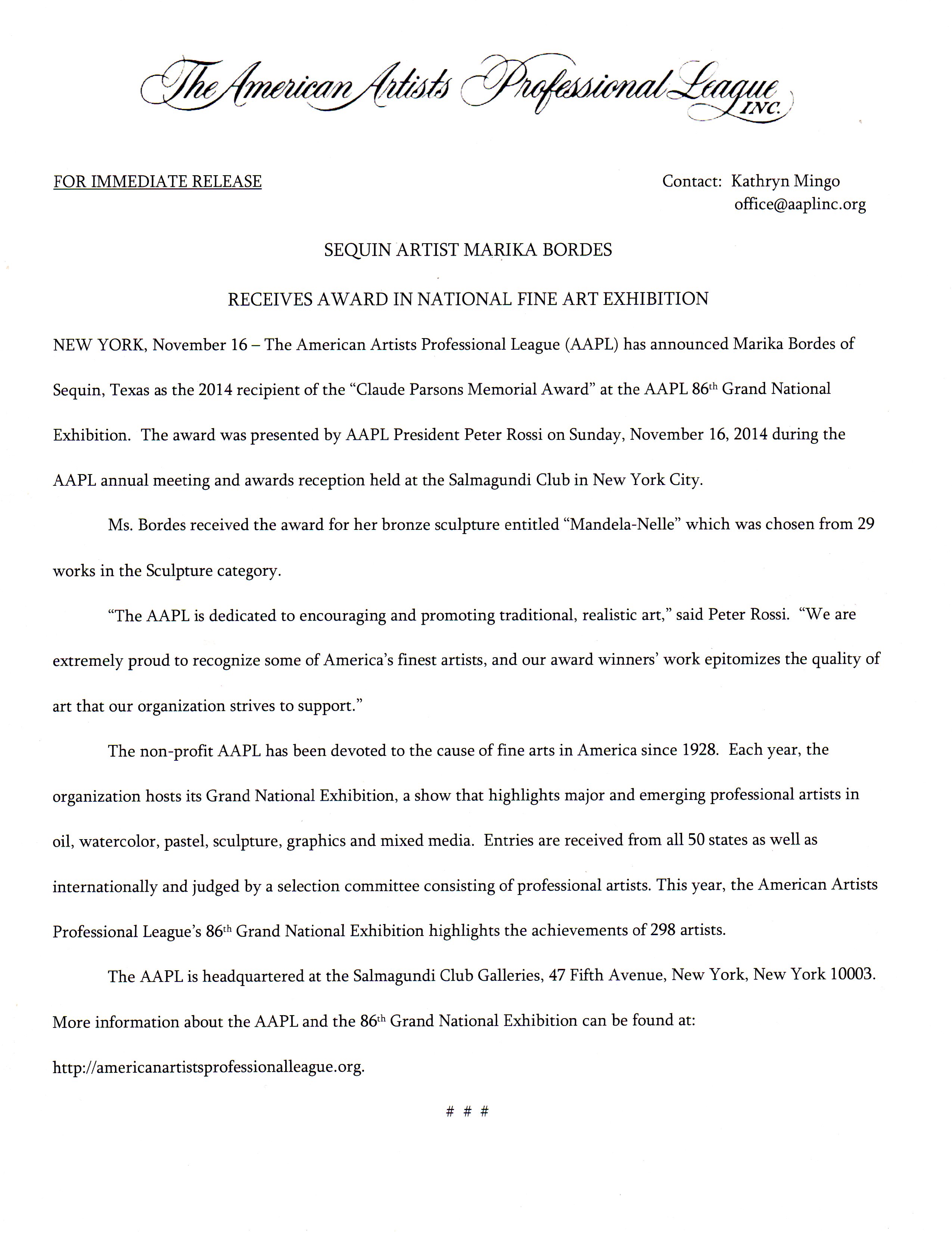 The Coleman Theater hosted Bordes’ last viewing on Thursday but her sculptors can be seen on her website at https://marikasculptures.com/