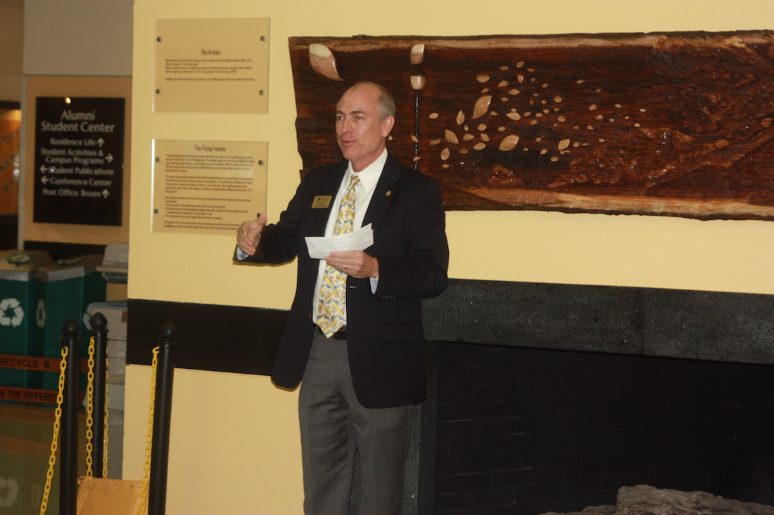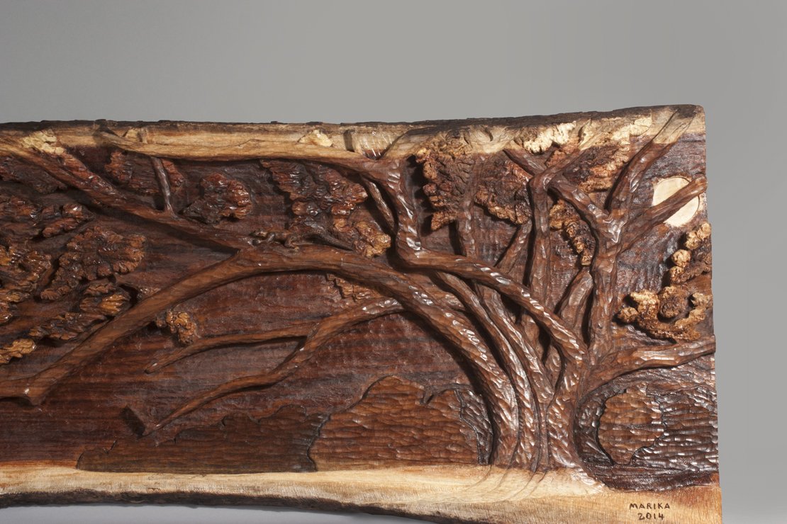 Marika Bordes, from Seguin, Texas, brought 14 of her artistic wood carving pieces, which have been displayed in the grand ballroom on the top floor of the Coleman theater all week.