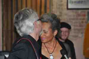 Although somewhat dominated by the 15-foot presence of the uniquely impressive “Gwaihir,” the fascinating exhibit, of both Bordes’ work and that of her students, also included (adding to the totality of the evening’s experience) written appendages by heartfelt poetic locals who were asked to provide their “view” of a particular work of wood.