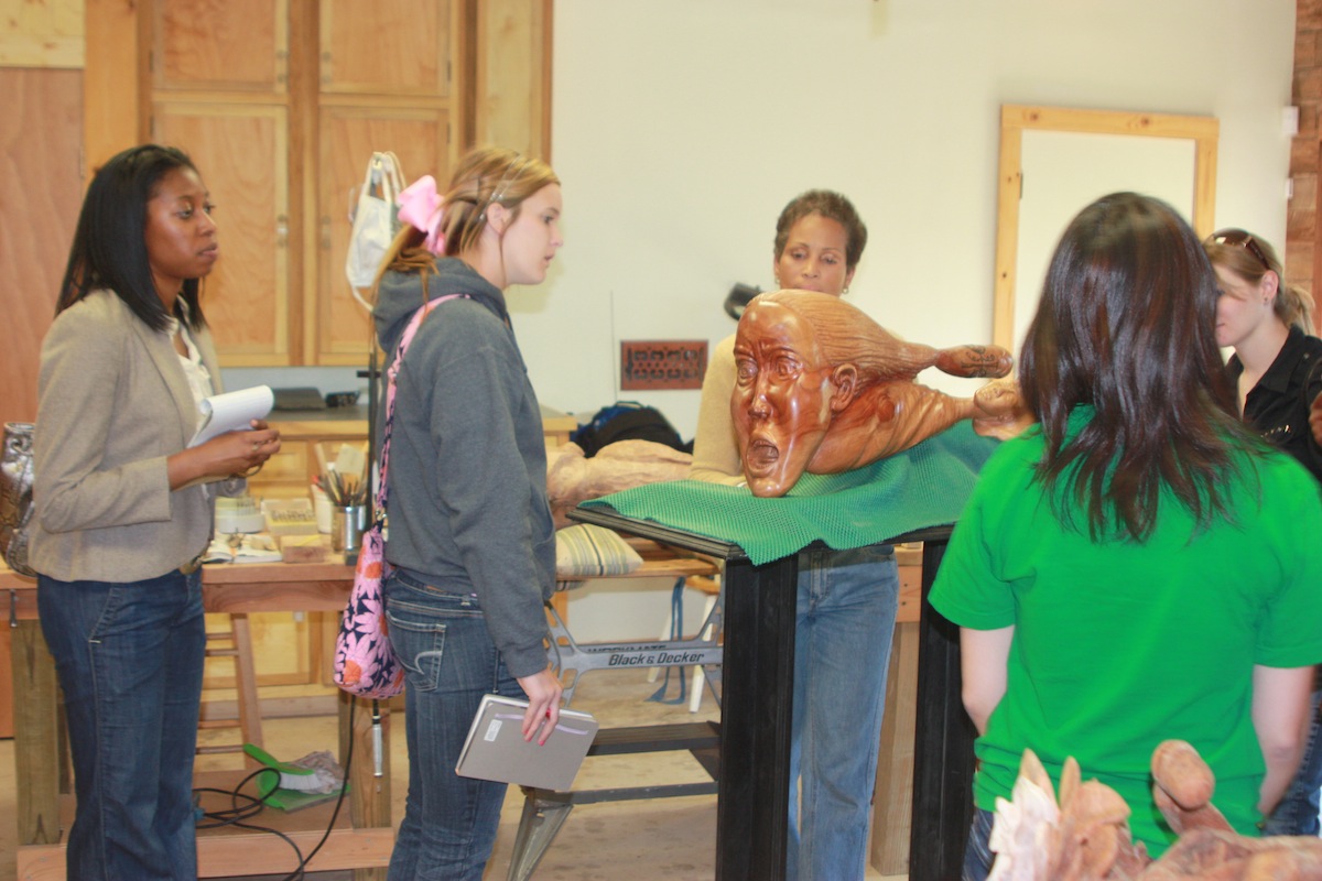 The TLU students who had the privilege to enter place of work, look around, take in her efforts, and have “hands on” experience gained an understanding deeper than those guests that go to the exhibits where her pieces are showcased.