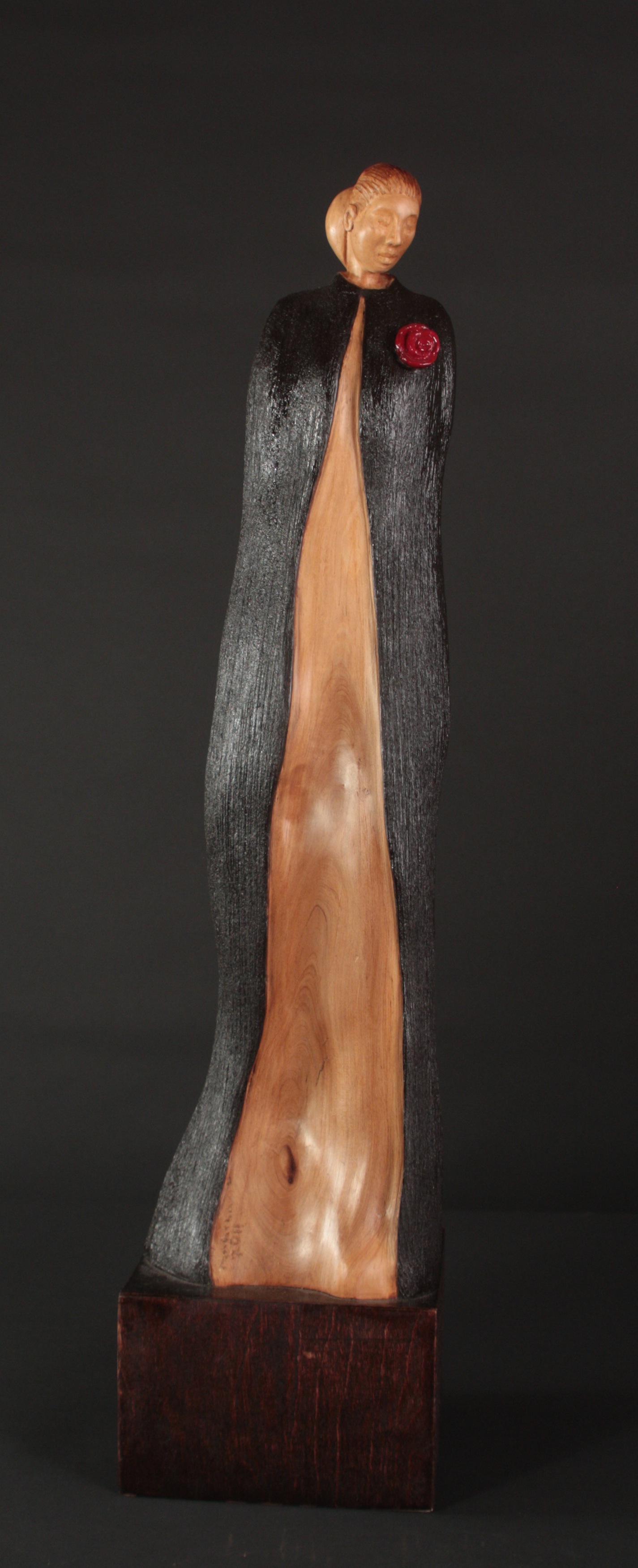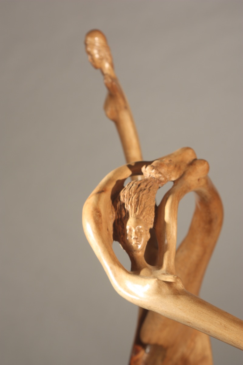 To celebrate their 50th wedding anniversary a couple commissioned a sculpture.  What an honor it is for me to be part of such a momentous and personal occasion.  Such an honor and trust does raise the bar of creativity and excellence.  Tranquil-Essence is made of pecan and has a mesquite base.