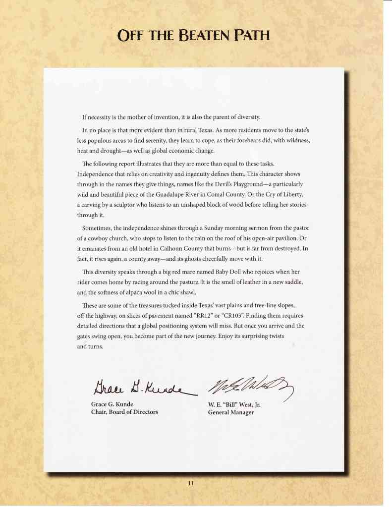 The Guadalupe-Blanco River Authority of Texas 2011 Annual Report presents profiles of eight individuals in its ten-county district.  Barbara Elmore wrote about Marika who represents Guadalupe County.  Connie Rothe designed the annual report.