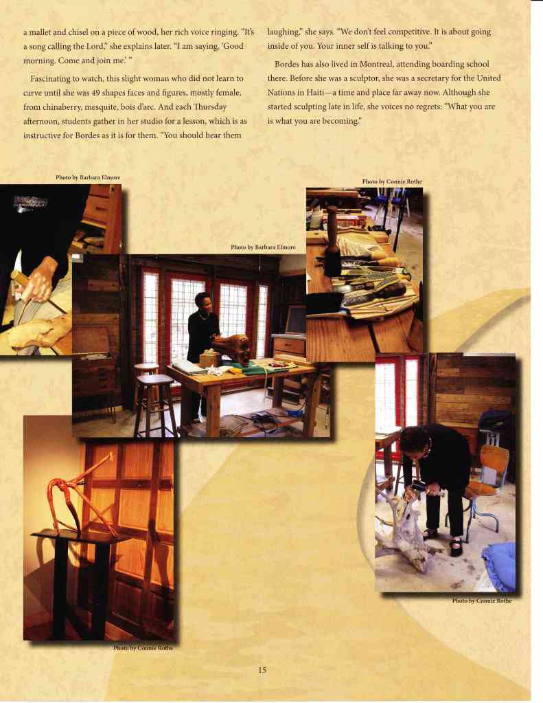 She said she gets her inspiration from daily living. One particular piece called “Carousel of Woman” represents the life of woman. She explained the piece in detail of how she carved each woman on a raft.