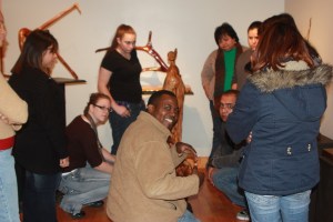 October 19, 2011—Marika Bordes, master wood sculptor, allowed the Texas Lutheran University (TLU) journalism students to visit her home studio and hear her and her sculptures that she describes as, “poetry.”